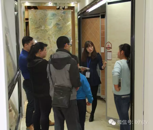 设计师带着业主朋友选购主材。