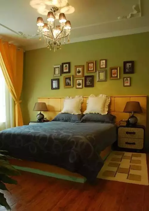 卧室也是很讲究品位的地方,白色木质背景墙挂上墙画,别具一番风味。