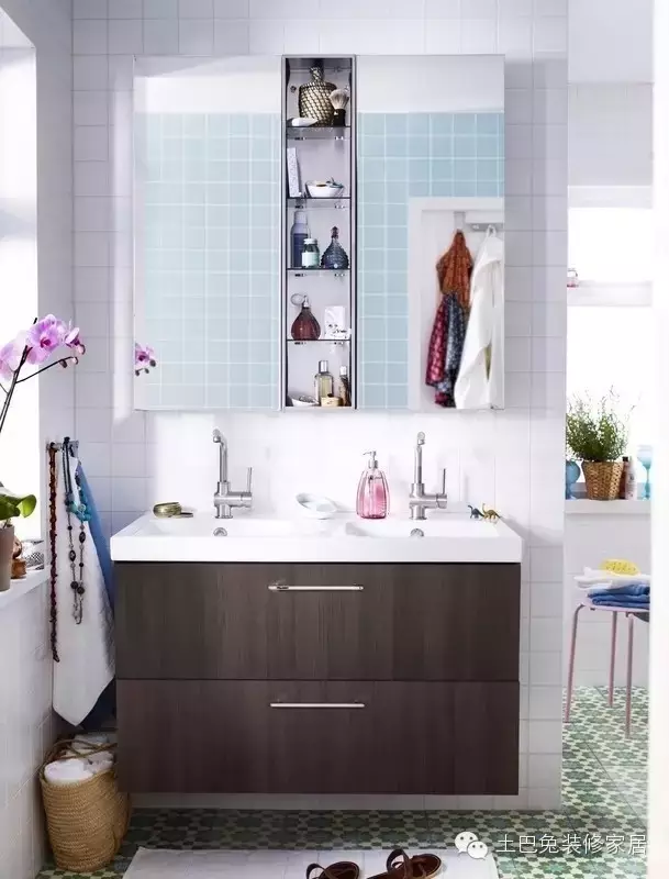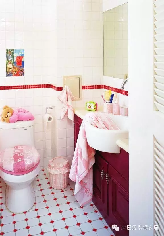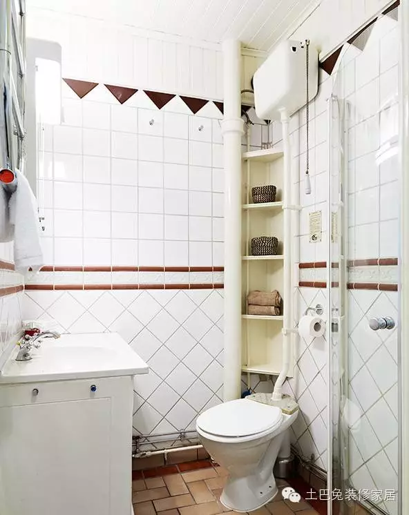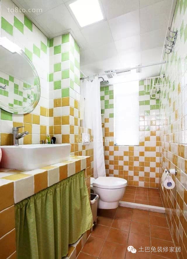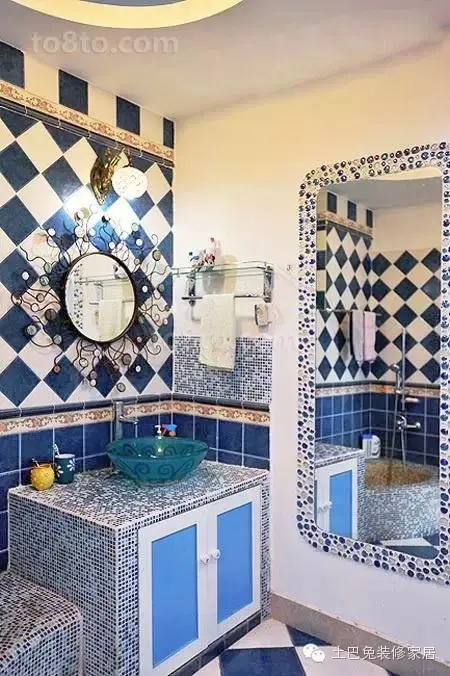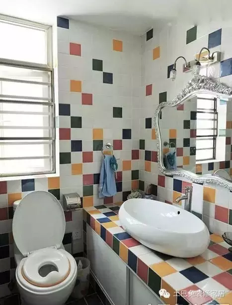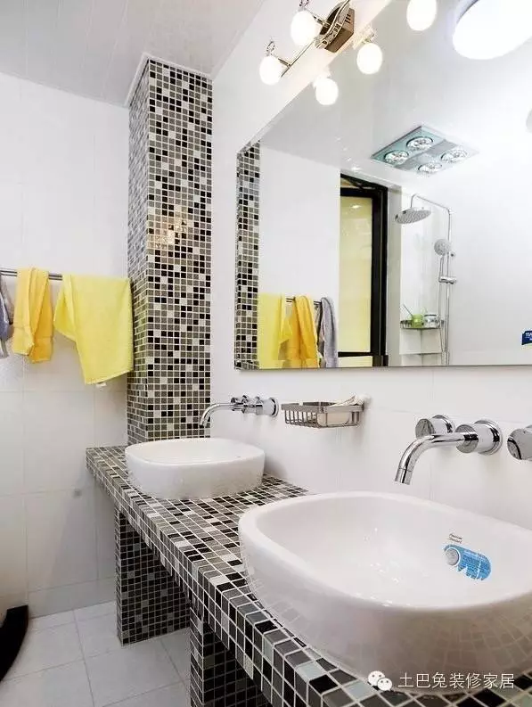 通过花式瓷砖搭配使用,在颜色上力求变化,让瓷砖创造出独具特色的浴室风格,另外,铺贴的方向和形状都可以大做文章哦~