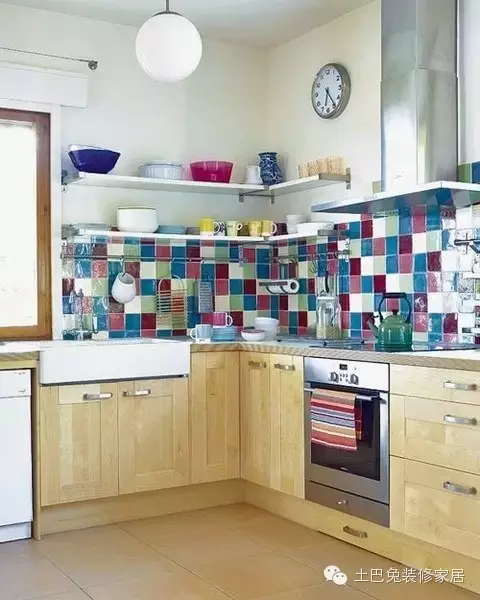 白色瓷砖+几片彩色瓷砖,我猜你家的厨房瓷砖一定是这样搭配的,没错!这是中国很多家庭厨房普遍的铺贴方式,但是你有没有想过给厨房来点大胆的色彩呢?来看看以下厨房瓷砖铺贴效果吧,看完再决定!