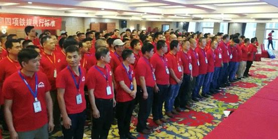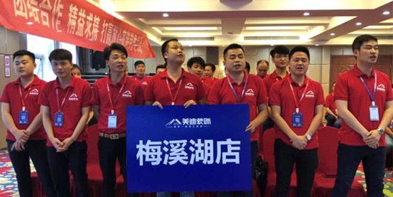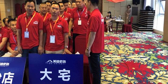 大会于下午四点正式开始,由美迪装饰营销中心常务副总经理贺军主持,在各门店项目经理与监理的的组织下,首先由我们的匠心工人发表了团队宣言。