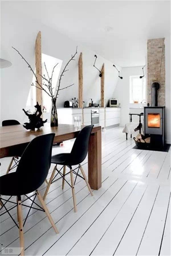 因为北欧的酷寒天气,几乎家家户户都装有火炉,久而久之,这也成为北欧风格居家的一项特色了。如果你真的非常非常向往北欧风格,愿意装了火炉但一年只有寒流来的时候开,那其实家里有一个fireplace是很温馨的。不过如果你实在用不着,那也可以装假的,里面放蜡烛即可。