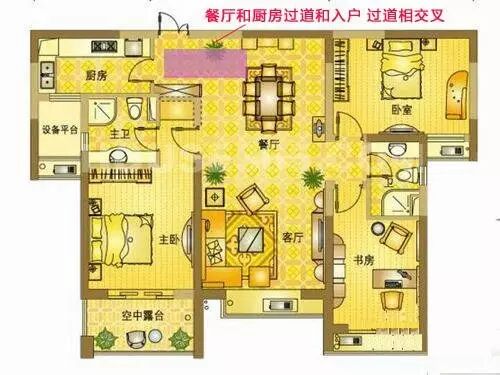1.玄关处的过道影响厨房与餐厅之间的动线。