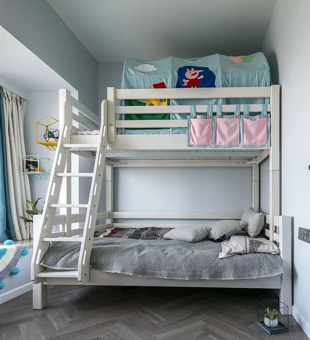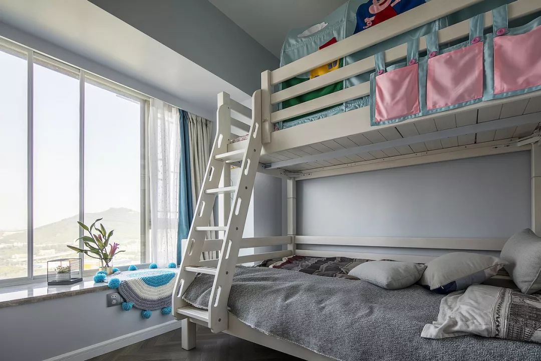 ▲上下铺儿童床,灰色调的空间,让这个小儿童房显得格外的轻松自然,充满了童趣感。