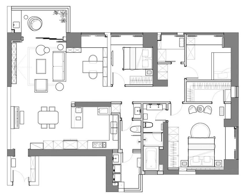 这套165平米的房子,以时尚大方的现代简约风格作为装修基础,在宽松的空间下,轻松自然的格局显得格外的舒适惬意。