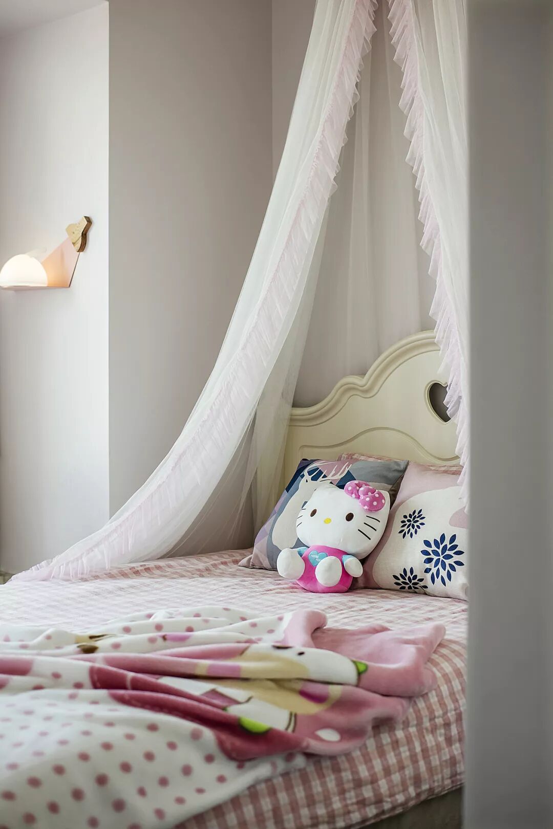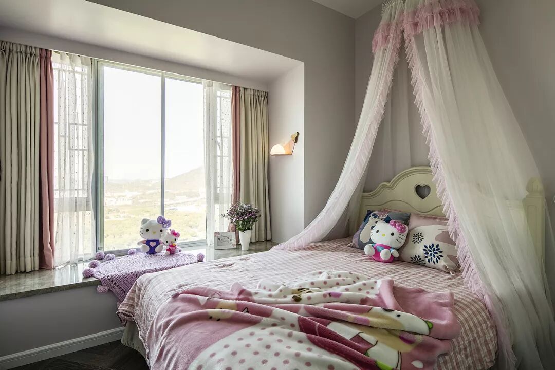 ▲大女儿的儿童房,床头上挂上一款床幔,在粉色调的空间基础下,显得格外的优雅浪漫。