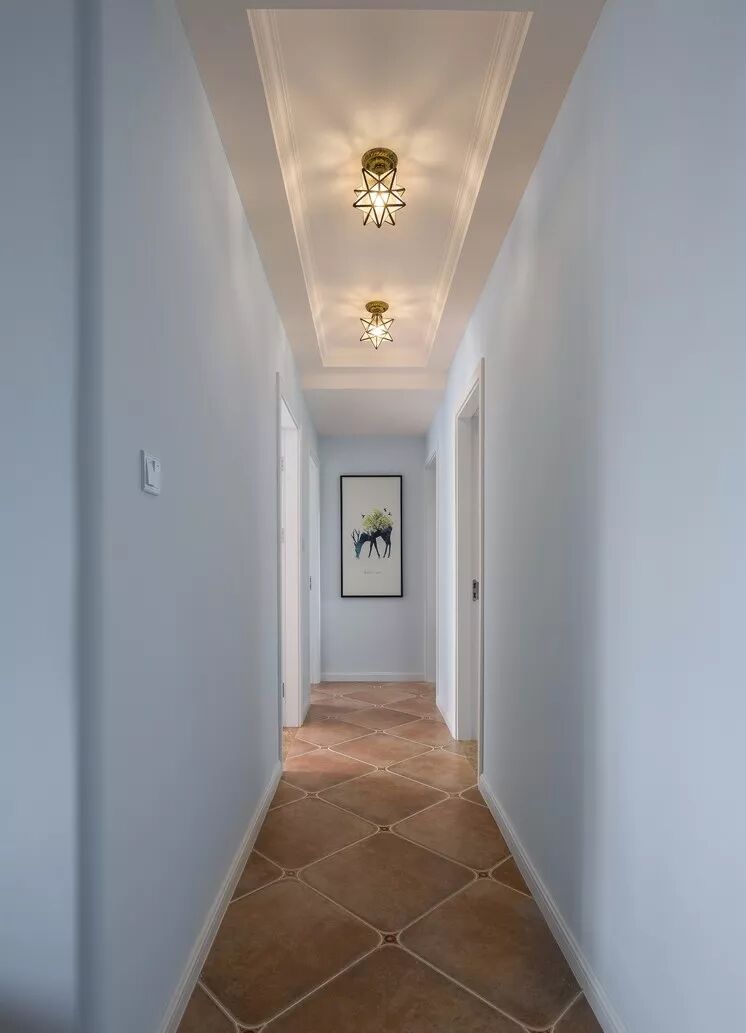 ▲ 过道延续了浅蓝色的明快,没有过多的装饰,表现出一种理智和纯净的美丽。