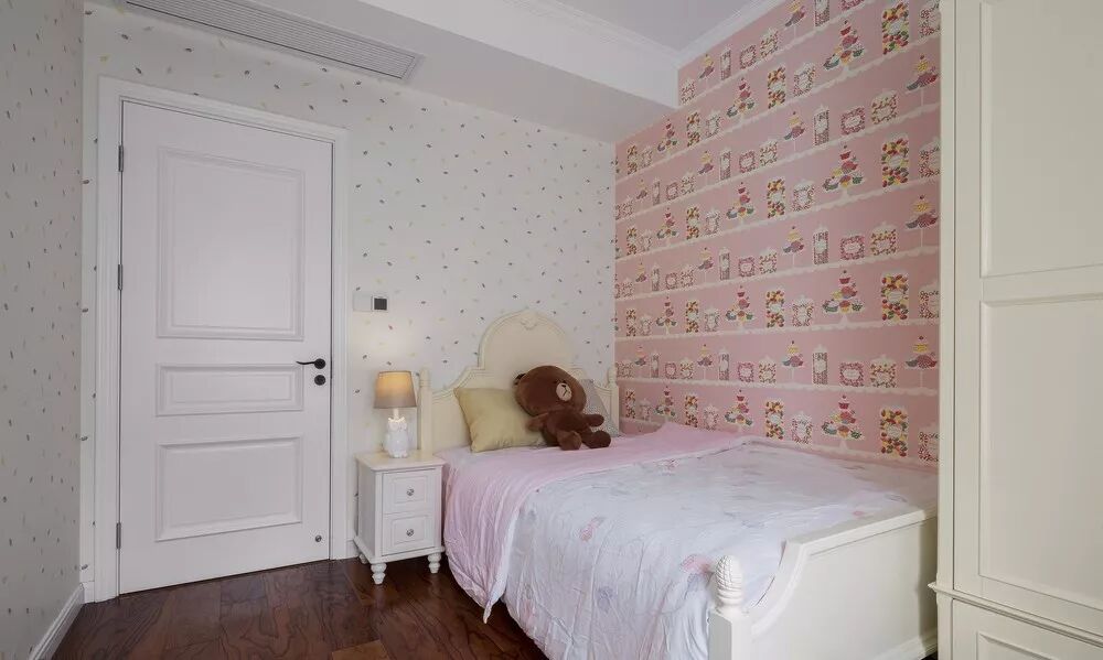 ▲ 儿童房的设计跳出了厚重的深色系,以白色为主色调,粉色的使用突出了小女孩本就具备的可爱气质,给孩子一个纯真天地。