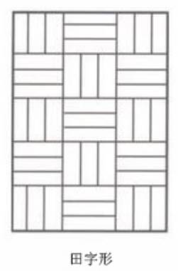 田字铺贴法就是将几块同样长度的长方形木板拼接成正方形,然后横竖更替,做成一个田字格的造型。