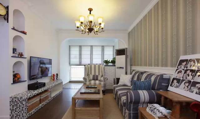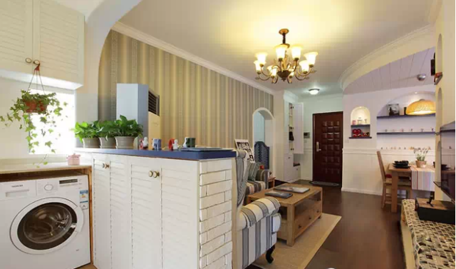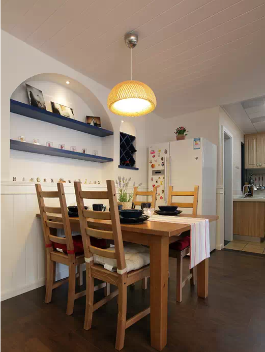 日期:2015-12-02 10:26:40整个家居有点儿美式风格也有点儿地中海的感觉,所以有点儿混搭的感觉!很是惬意!喜欢夏天,就像我们的爱情从那年的夏,72平清爽地中海混搭美式婚房装修,小清新婚房设计,清新。木制家具与布艺家具的有机结合,还有灰绿色墙面显得家里格外的小清新。