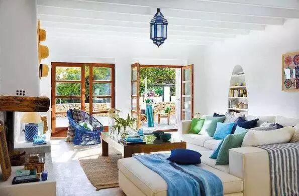 案例中的私宅位于西班牙巴利阿里群岛上,配合当地居住环境形成典型的地中海风格,值得一提的是家里很多装饰品都是手工制作的,简单不失浪漫。