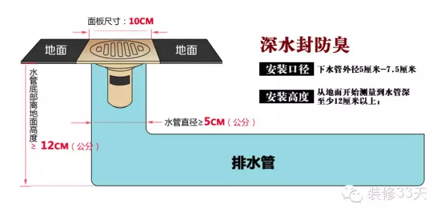深水封的防臭性能优于T型,使用寿命更长,下水速度更均匀,所以卫生间和淋浴房有条件建议用深水封,但是深水封需要12cm的安装深度,如果深度不够就没办法用。T型的最大下水速度大于深水封,但由于是重力下水,水小的时候反而下水很慢,适合用在水流集中的洗衣机地漏。