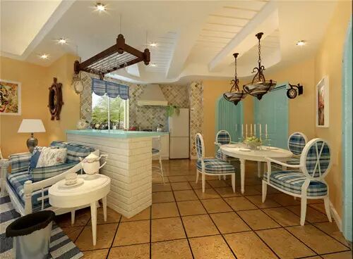在一般装修风格中,很少出现三种或则三种以上的装饰色彩。美式装修风格中,多采用深褐色的装修色彩;地中海装修风格中,一般也是黄、白、蓝三色;北欧装修风格中,则是大片大片纯净的白……而在混搭风格装修设计中,没有装饰色彩的定位和规则,它可以采用多种装修元素进行一个色彩的拼贴,从而使得家居空间显得更有立体感,家居生活环境也变得更为活跃。