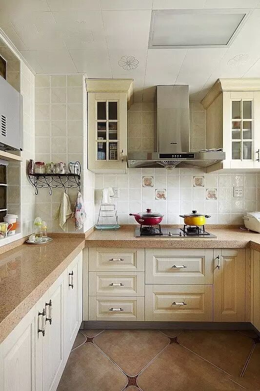 注意:应选用抗老化的材料,因为厨房整天烟熏火燎的,装修材料老化的快。