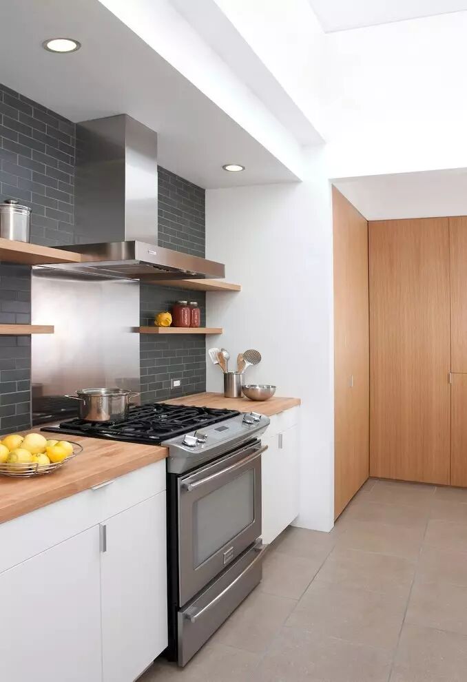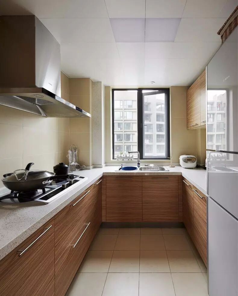 厨房虽小,该有的还是要有,操作台、各式大小厨电,要是没设计好,对以后的生活很不方便。