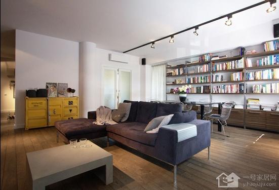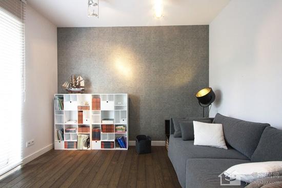 设计师用不等量的白色和灰色的墙面设计,再采用白色书柜和灰色沙发,视觉上色彩的对比,增加了空间的层次感。