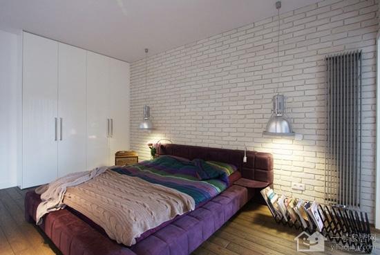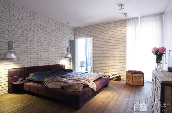 卧室背景墙是由整面的文化墙砖堆砌而成,白色的砖面设计将卧室空间提高了不少的亮度,避免深沉颜色造成的封闭感。同时,文化砖的造型也为卧室营造了一种原始的复古风格。