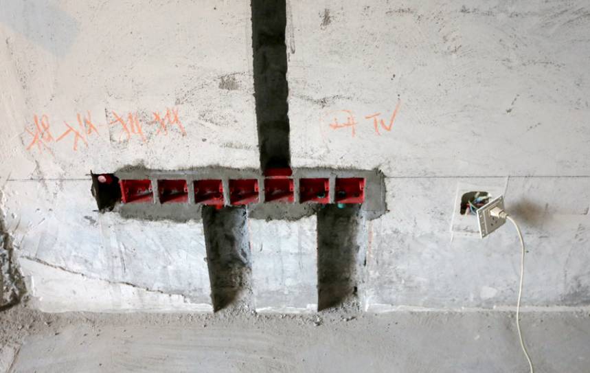 6.潮湿区域(卫生间、厨房、阳台)的地面不允许敷设电路,PVC线管在砌体墙上开槽敷设时,应确保线管嵌入,且线管外壁距离墙面5mm。