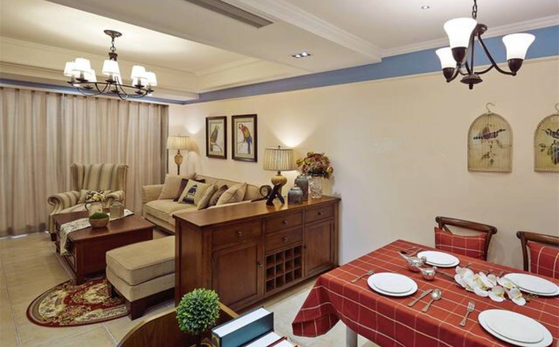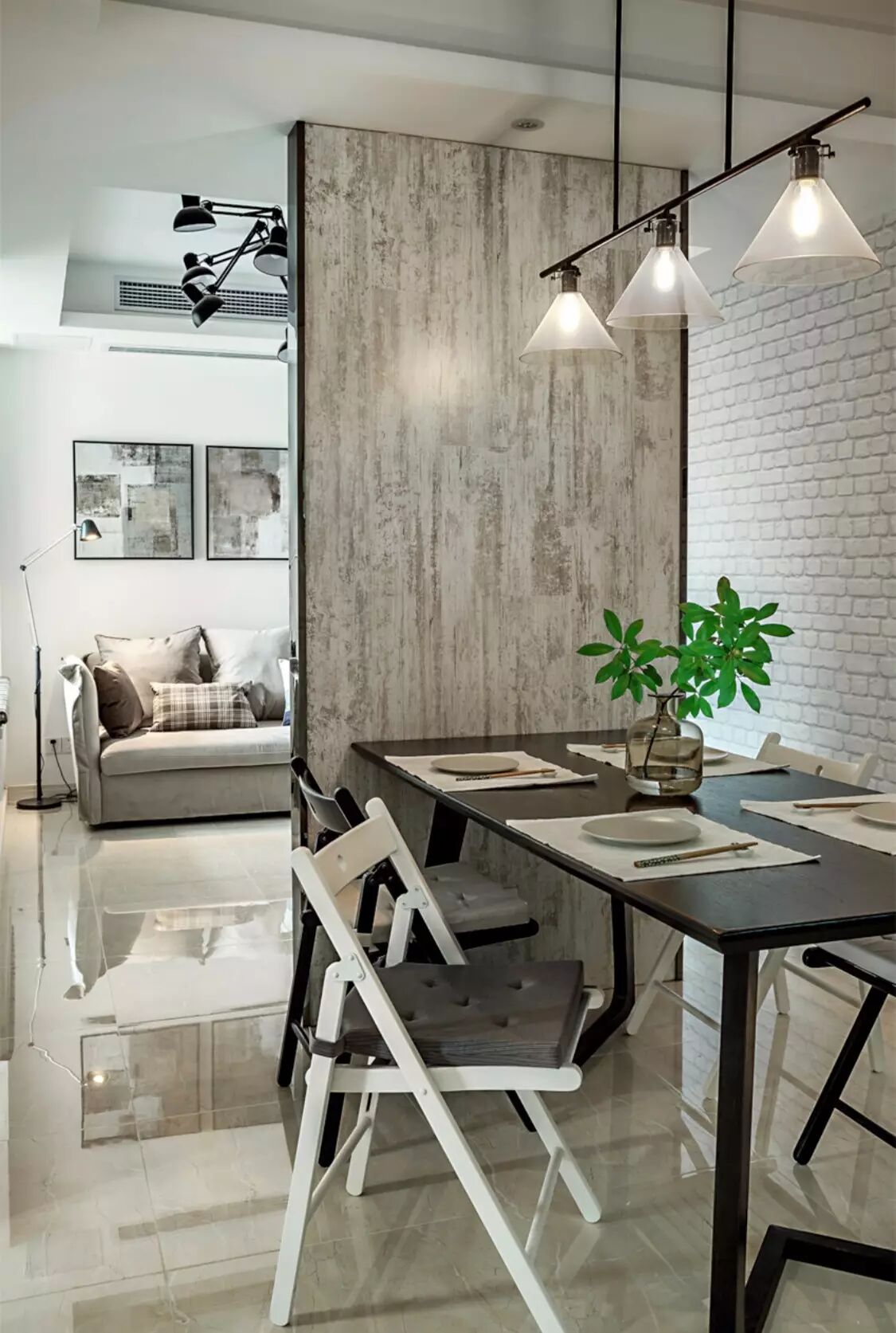 客厅与餐厅为一体的空间,则可以利用矮墙、酒柜或者装饰柜等作为隔断,让两个空间的功能性更加明显,两个空间隔而不断,视觉上看起也更加大;