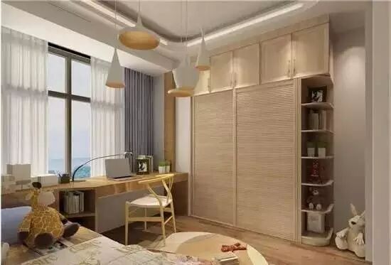 飘窗改造成收纳、休憩和学习区。顶柜可以收纳被褥、枕头等。地柜可收纳各种玩具、公仔等,让卧房时刻保持整洁。