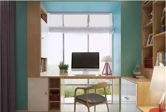 落地飘窗,定制同等深度的书柜和书台,轻松打造一个采光极佳、功能极强的办公区。