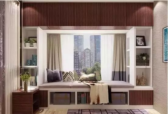 “回”字形飘窗柜,上下左右均可储物;中部嵌入榻榻米沙发,还不影响采光。