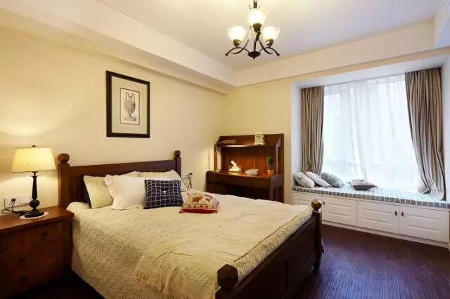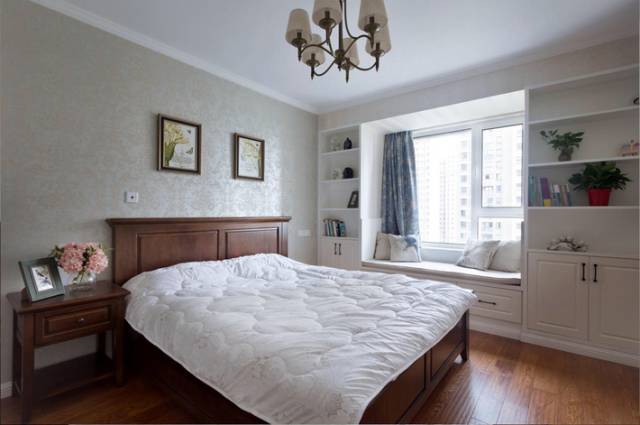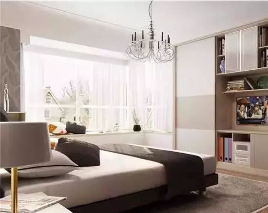 卧室收纳不紧张,可以将飘窗简化处理,只需要一方矮几、一个抱枕,就可以打造成休闲区。