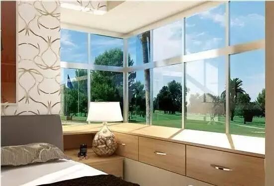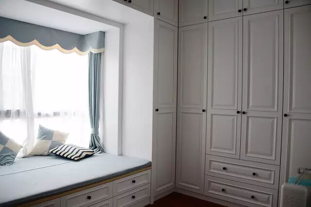 转角飘窗定制转角收纳抽屉,既不影响卧室采光,又为卧室增加了不少储物空间。