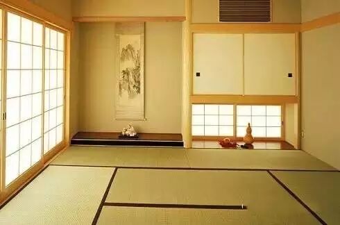 特点:散发着稻草香味的榻榻米,营造出朦胧氛围的半透明樟子纸,以及自然感强的天井,贯穿在整个房间的设计布局中。空间造型极为简洁,家具陈设以茶几为中心,墙面上使用方格几何形状,与细方格木推拉门、窗相呼应,气氛朴素柔和。
