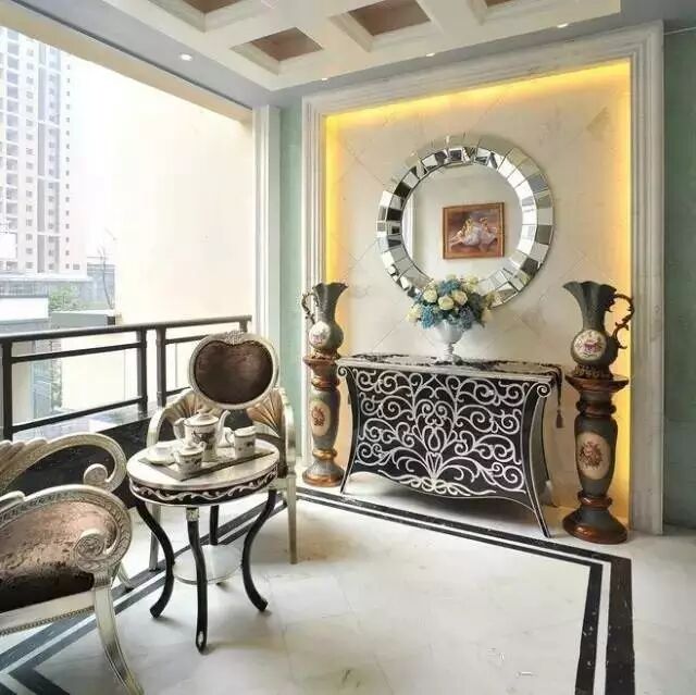 特点:在形式上以浪漫主义为基础,装修材料常用大理石和金属色,整个风格豪华、富丽,充满强烈的动感效果。最适用于大房子,若空间太小,不但无法展现其风格气势,反而对生活在其间的人造成一种压迫感。