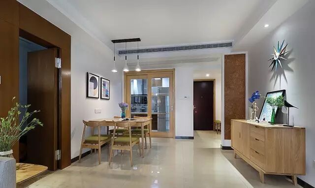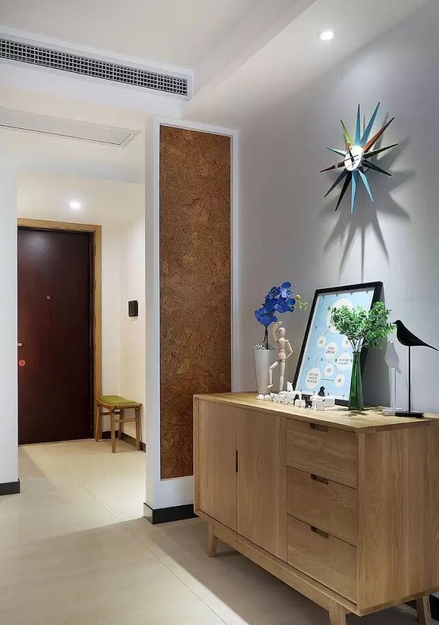 原木色的边柜,摆放一些小艺术品,一进门就给人留下自然高逼格的印象