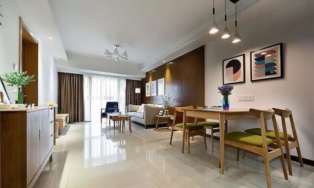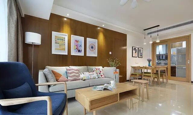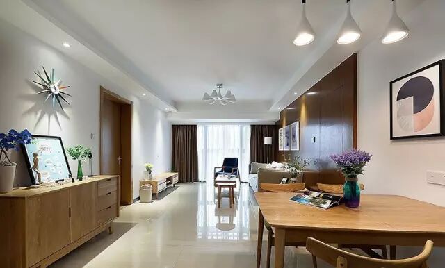 这是一个109平米的简约风格两居家装案例,木材在家装中得到大面积的使用,木质家具,木门,就算背景墙都是木质的,这也体现人业主追求自然舒适的想法。