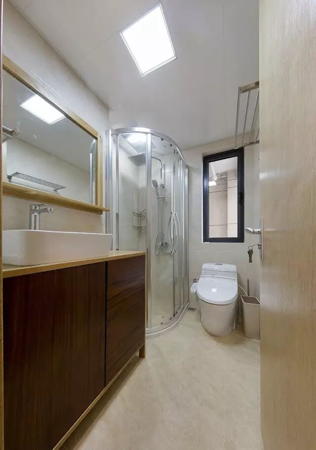 卫生间门的设洗面台,更加方便整个家庭的使用。一面小小的黑板墙可以不无限的创造力