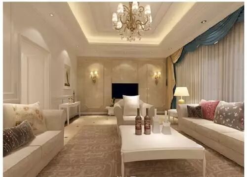 上为顶,以清淡明快的色彩为宜,不要选择太过沉重的色彩。一是沉重的色彩会在视觉上产生一种头重脚轻的感觉,二是深色会比较吸光,影响客厅的采光,让整个客厅显得比较昏暗、压抑。