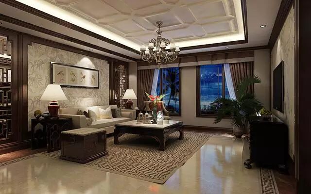 住宅的一般层高在3米左右,吊顶不要吊得太低,太低的吊顶会给人一种压迫感,会感觉有点儿透不过气。吊顶可以采用四边低中间高的造型,这样在视觉上会显得开阔一些,而从风水的角度而言,吊顶中间的凹位会形成一个聚水天池,对住宅是大有裨益的。