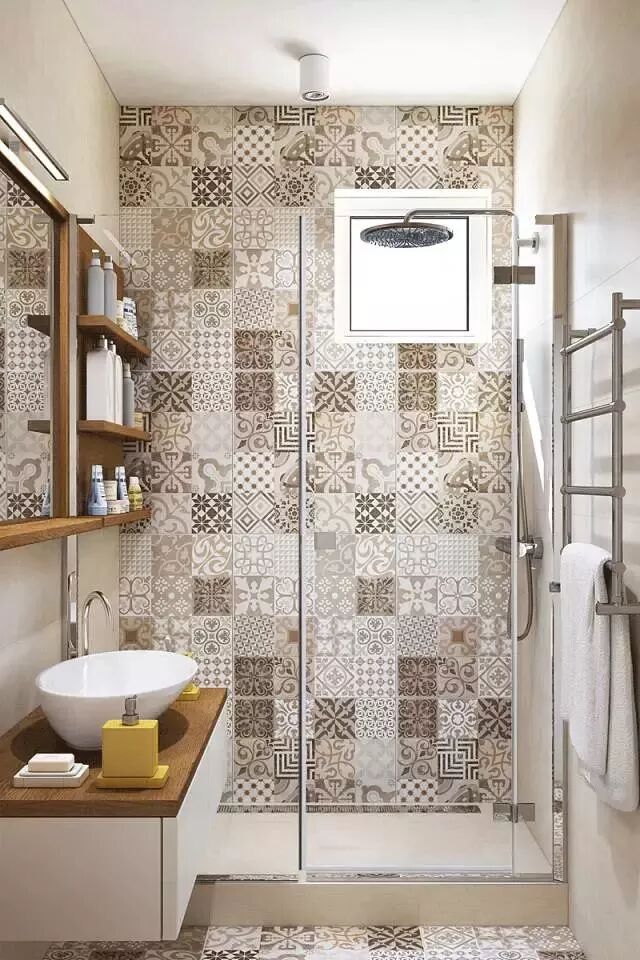 淋浴房内做了很多的收纳设计,还延续了玄关低密度额花砖设计,这样看起来才不会过于单调。