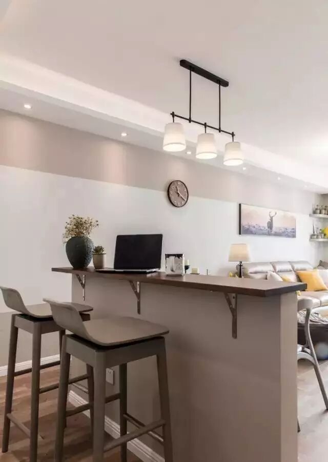 大储物柜和吧台的设计,大大提高了空间的使用率,更多功能的体现使得客厅饱满和实用。