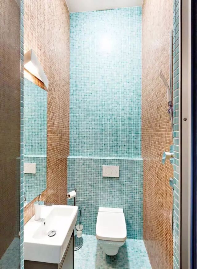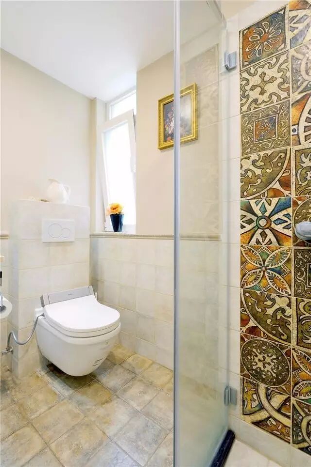 ▲浅色略显单调,用亮色拼接瓷砖做色彩点缀