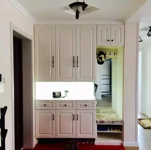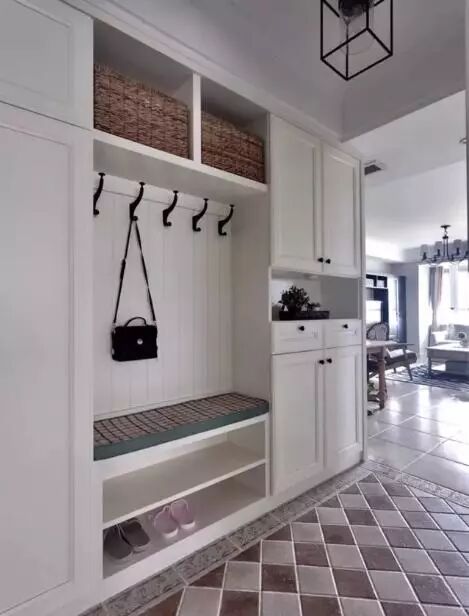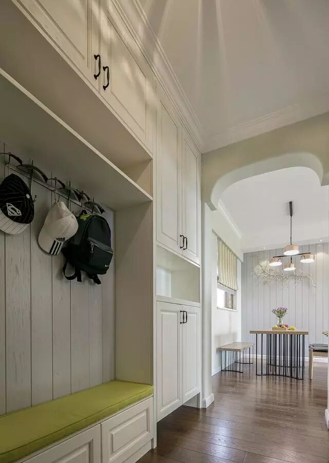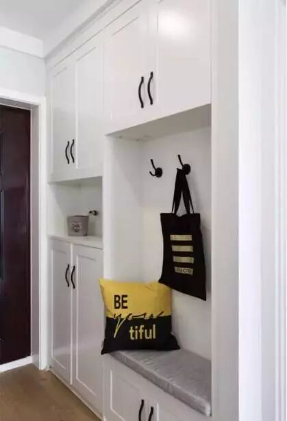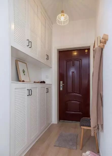 像上图这样在玄关处装上一个衣柜,这样一进屋就可以了把衣服挂在衣柜里面,使整个屋子看起来更加的干净、整洁一点。
