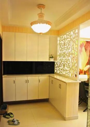 小编认为,关于玄关的设计还要注意要增加私密性,用玻璃或雕花,在视觉上做到遮挡的效果。这样就不会在客人一进屋的时候就把屋内的整个情况一览无余,感觉很没有隐私感。
