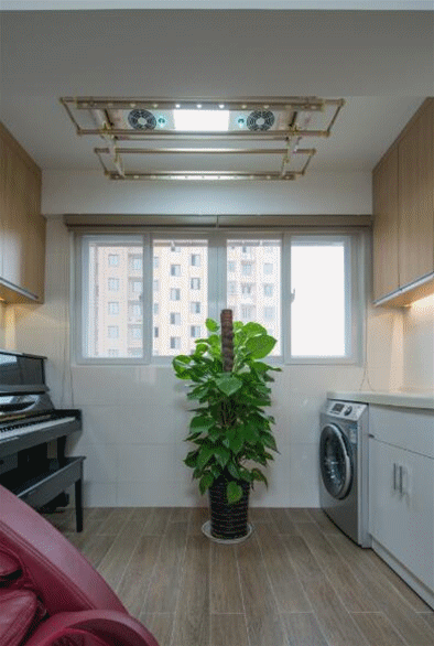 吴叔家的很多家具都是智能化的,阳台上最值得一说的就是这个hooeasy自动晾衣架。它可以根据人体需要的高度来进行自动调节,再也不用拿着长长的晾衣杆踮着脚往上面挂衣服,很是方便。