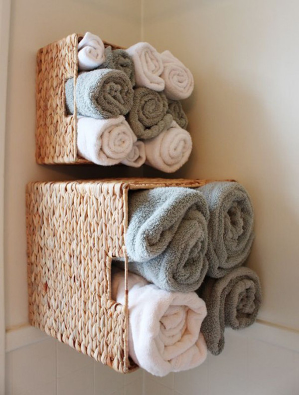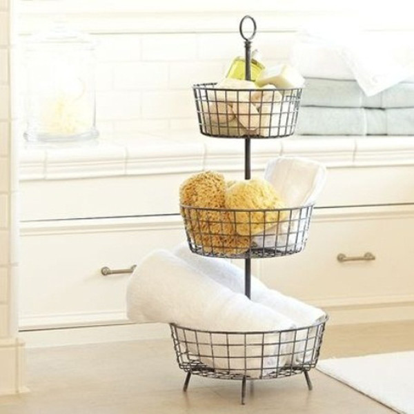 卫浴间的收纳法有很多,除了家具外,简单的小物件收纳能力往往更为突出。收纳架摆放在墙角合理的利用了室内死角,一层一层的收纳架可以挂上很多毛巾之类的小物件,收纳能力十分可观。