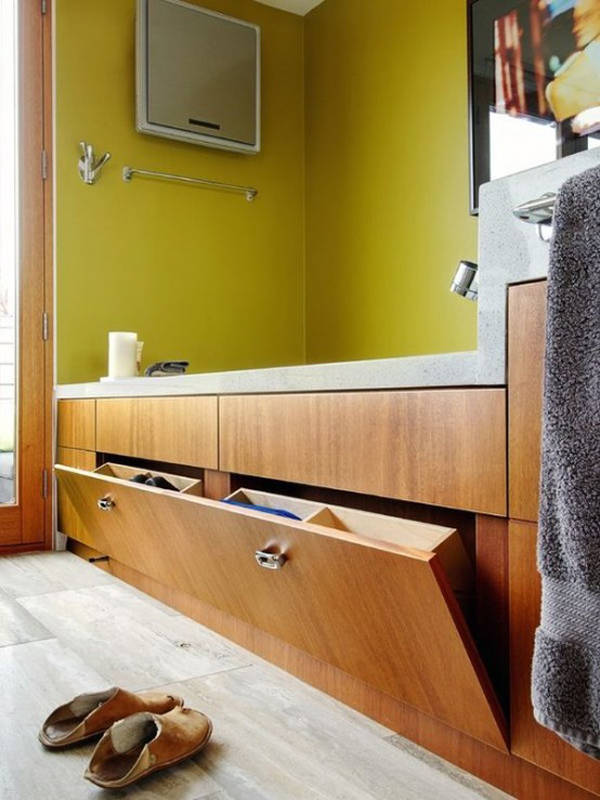 台盆下方的空间一定不能浪费掉,将浴室用品全部放进去。