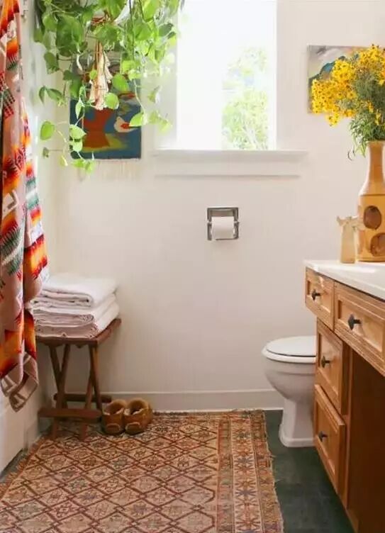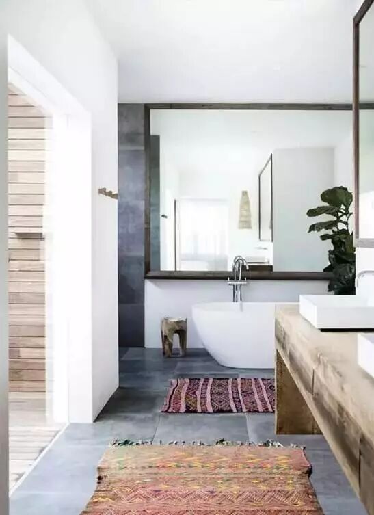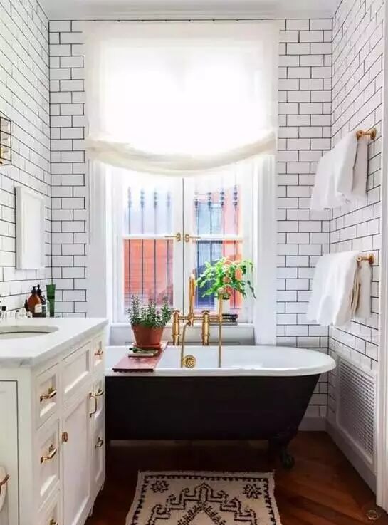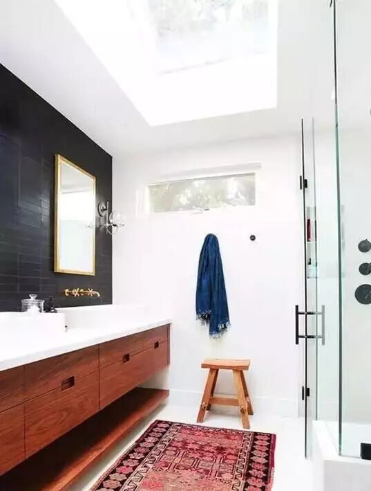 在浴室铺一块软软的地毯,瞬间让颜值上涨好几个档。