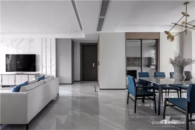 设计亮点:李征海老师像对待艺术品一样精研每寸空间,为城市繁华和自然宁静找到最佳平衡。在空间设计中,设计师融入客户的需求和文化,结合自身艺术沉淀,将空间的每个点、线、面进行系统梳理和规划,并通过天然的石材和木质展现居者的明快和简洁个性。宽阔开扬的优越空间和时尚雅致的灰白蓝色调,注入人性化的点滴细节。