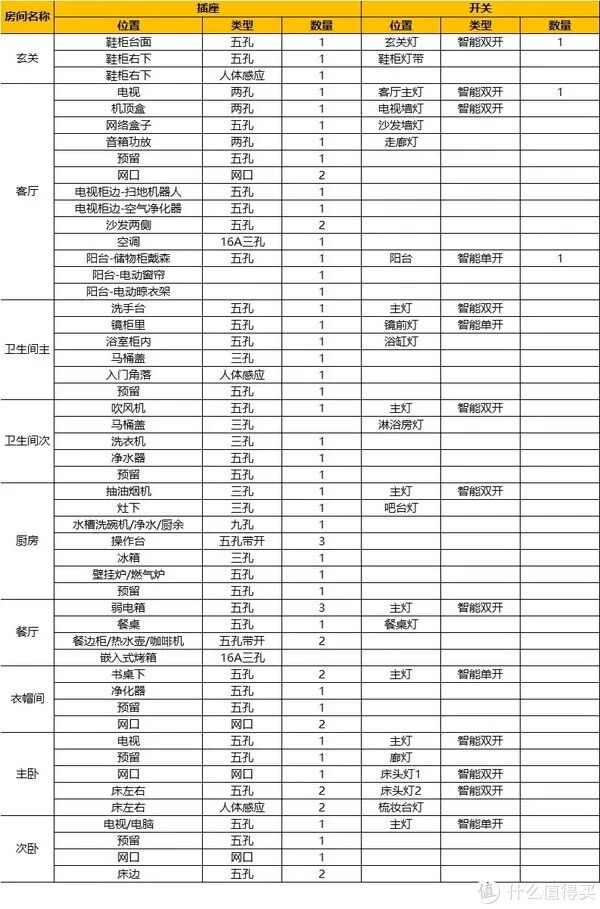 现在家电种类丰富,很多值友装修的时候也规划好了各种电器。这里眼睛君要提醒的一点是,厨下水槽位置最少设置3个用电位:洗碗机+厨余机+RO净水器,厨房台面上也最少设置3个常用电位电饭锅+微波炉+电热水壶。浴室柜镜柜和台下,至少预留一个用电位,镜柜里的用电位方便电动牙刷电动剃须刀充电使用,台下预留后期安装小厨宝。