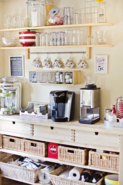 ▲厨具储藏区:餐具、杯具、烹饪小工具、保鲜盒可以集中储藏收纳;