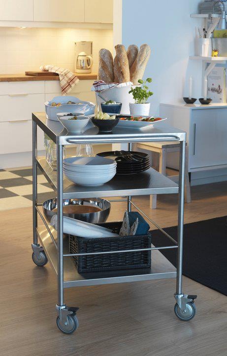 ▲厨房岛车(推车),厨房空间局促,可以用来充当台面,布局不便使用可以用来当做活动操作台,本身它是储物的好帮手。无形中厨房多了一位得力助手,却丝毫不占用空间。