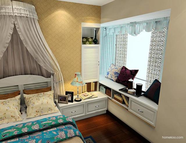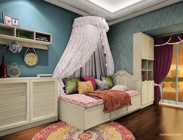 ▲把窗帘换成淡蓝色碎花,和碎花床品搭配十分和谐,挂上帷帐,让整个空间变得更为柔和。