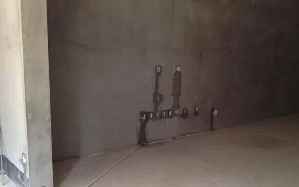 施工队长说,电视墙这里一般是5个插座,问我需要了几个?我直接说了N个?多多益善。其实这个也是有讲究的。我家电视机打算放在电视柜上,所有插座在下面居多。但是将来也许哪天我又想挂起来呢?~O(∩_∩)O~嘿嘿,女人总是善变的吧,所以上面也留了2个,如果挂起来,就用上面的插座,这样电源线始终档在电视机后面。是不是考虑的很周到呢?